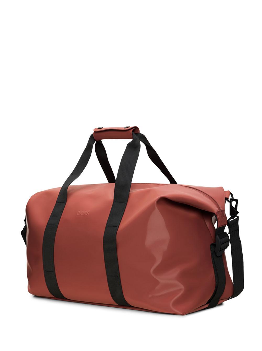 Weekend Bag da Rains: Borsone in gomma di colore blu, scomparto principale con cerniere lampo impermeabili AcquaGuard, materiale completamente impermeabile, maniglie a cinghia, tracolla rimovibile con moschettone.