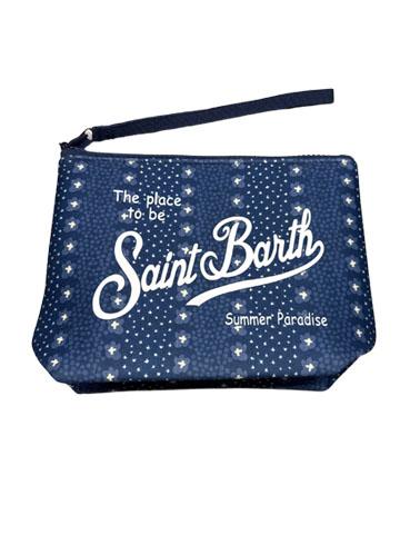 Aline da MC2 Saint Barth: pochette di colore azzurro, stampa all-over, logo a contrasto, chiusura con zip. Dimensioni: 20 cm x 14,5 cm x 7 cm