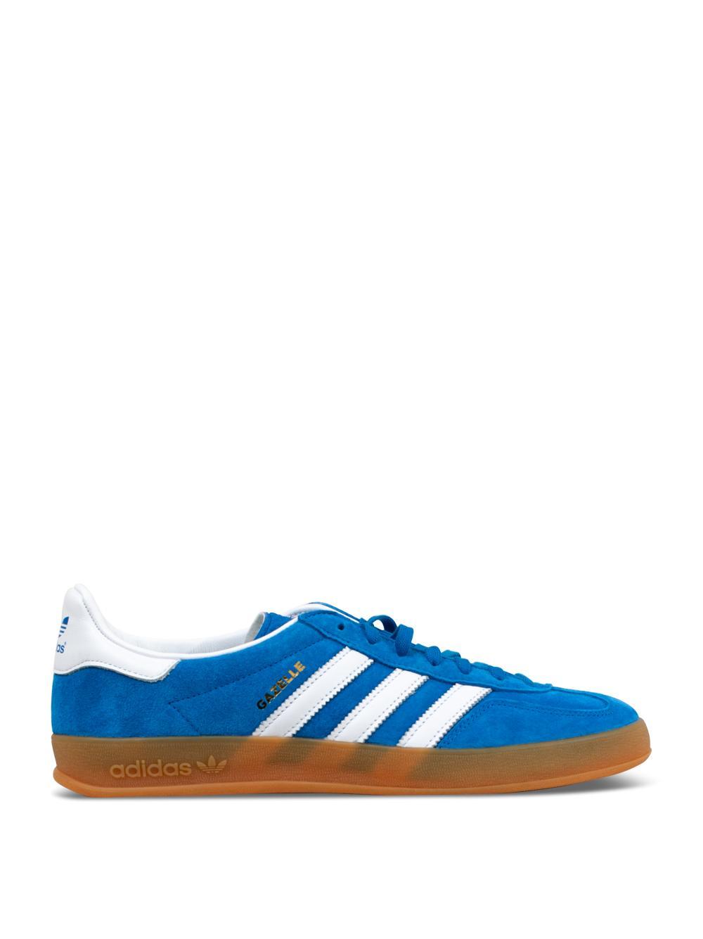 Gazelle Indoor da Adidas Originals: sneakers di colore azzurro, tomaia in suede, dettagli a contrasto, suola in gomma, chiusura con lacci.