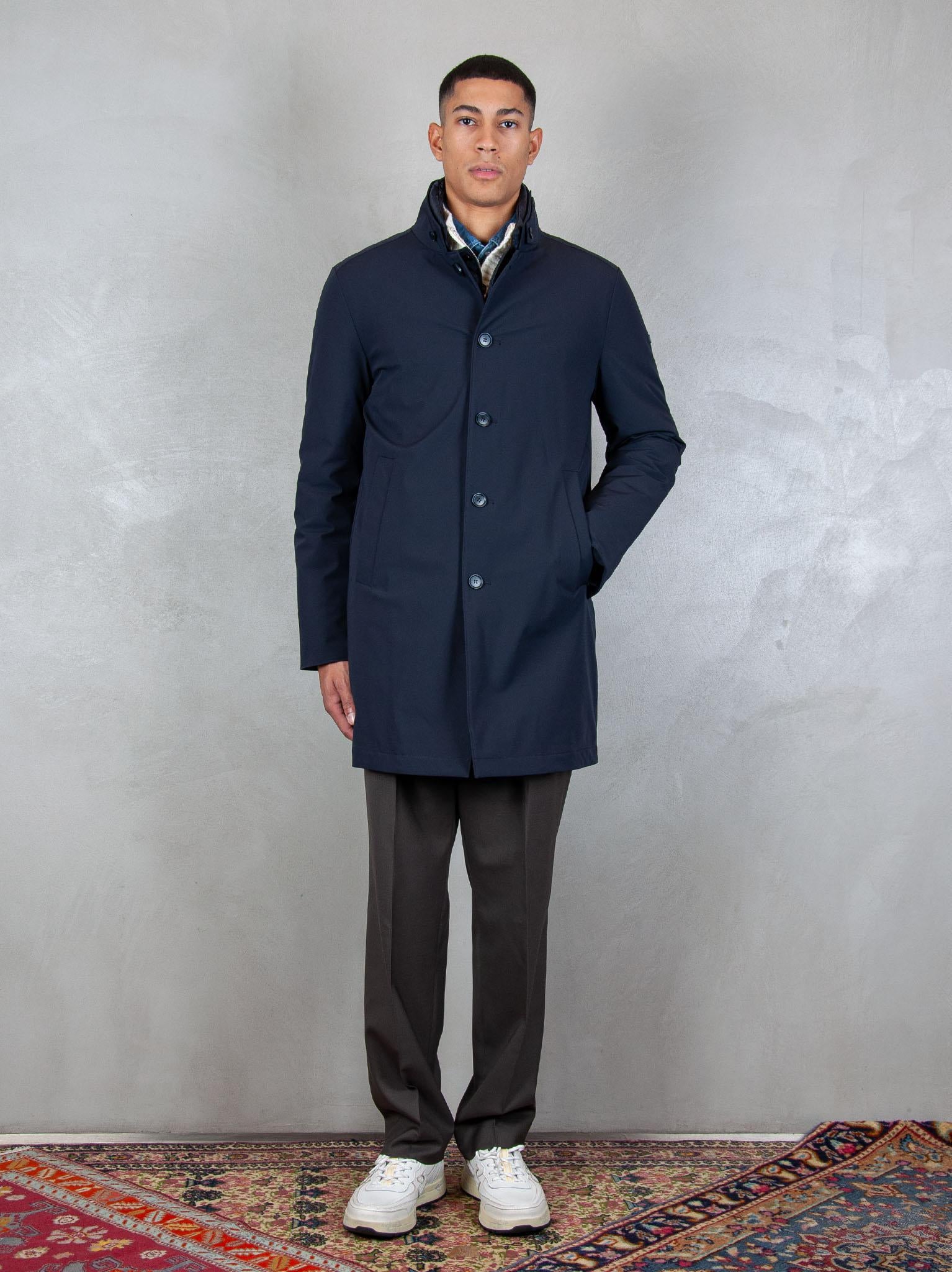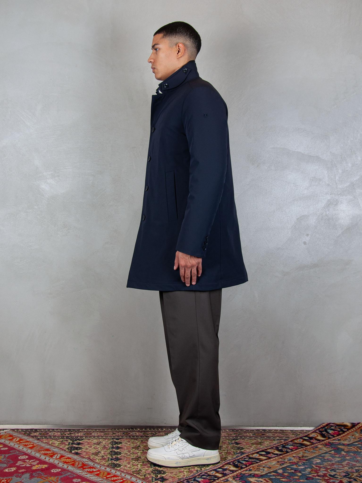 • Collo in piedi e dettaglio sottogola fissato con bottoni