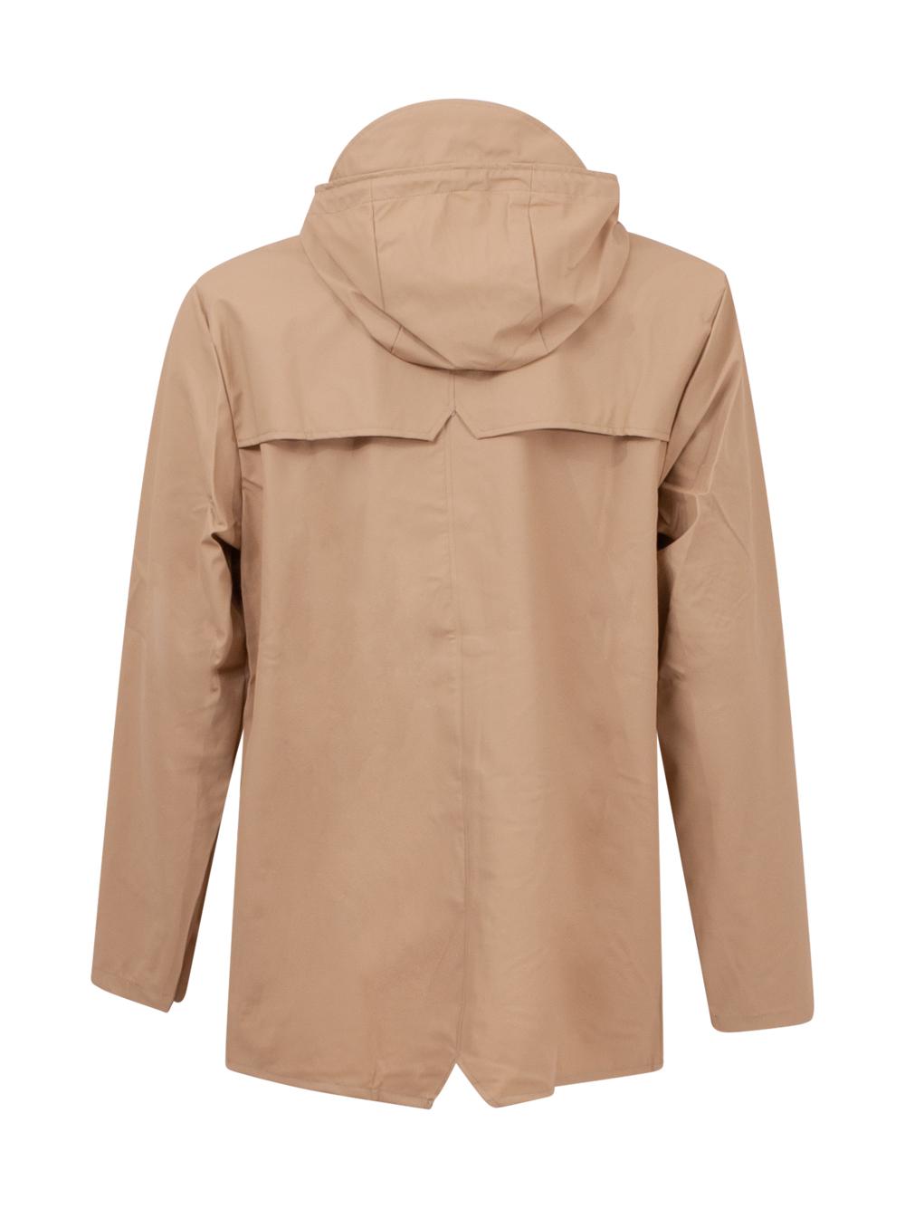 Jacket from Rains: yellow waterproof jacket, button closure, slanted pockets with double-welded flap, adjustable cuffs, adjustable hood, ultrasonic welded seams.