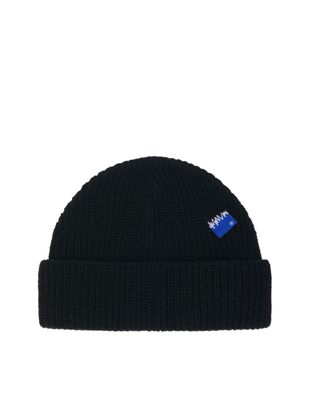 Beanie da Ader Error: cappello fisherman in lana, applicazione logo a contrasto.