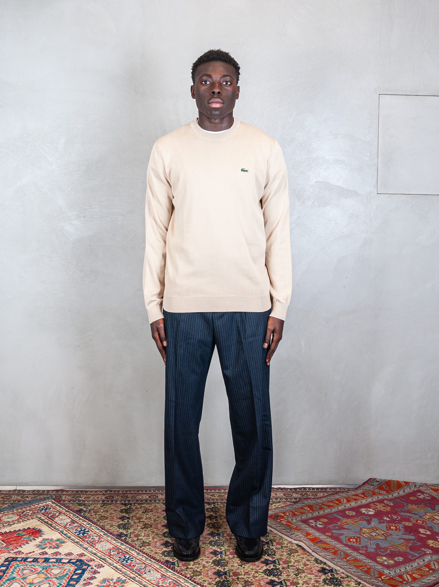 Maglia Girocollo da Lacoste: maglia girocollo di colore beige, jersey di cotone organico, regular fit, vita e polsini elasticizzati a costine, ricamo sul petto.